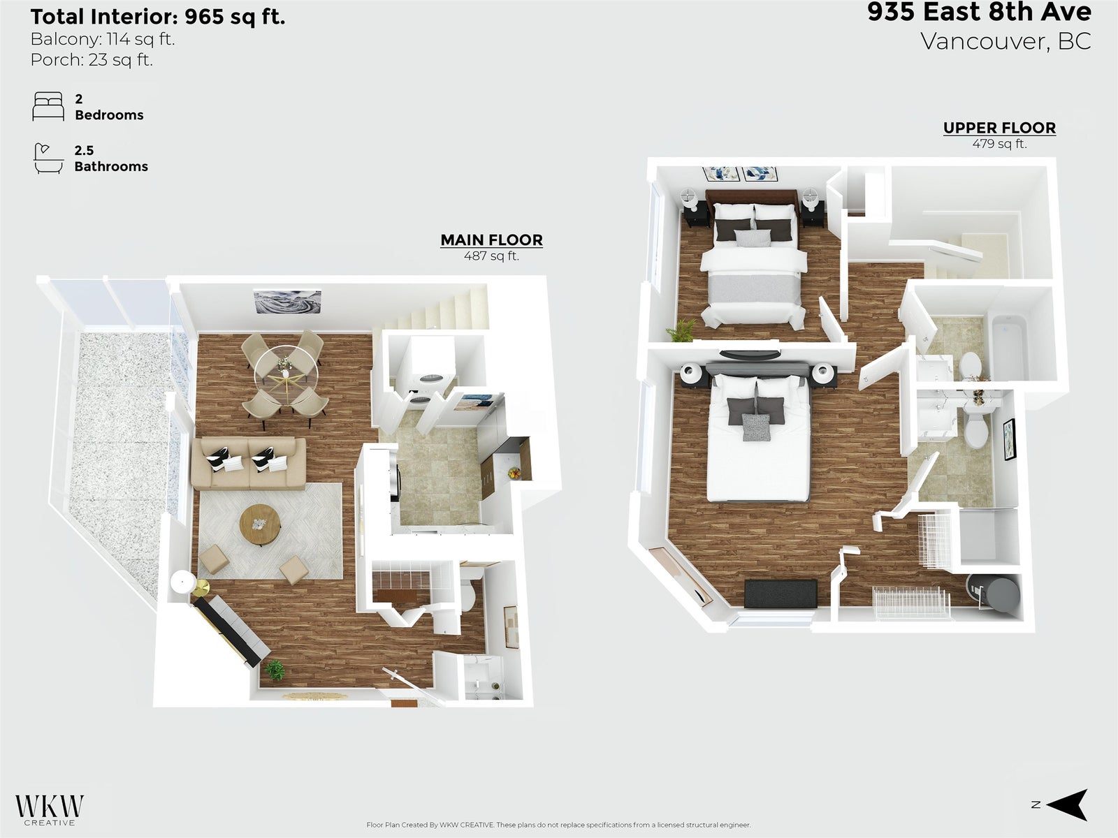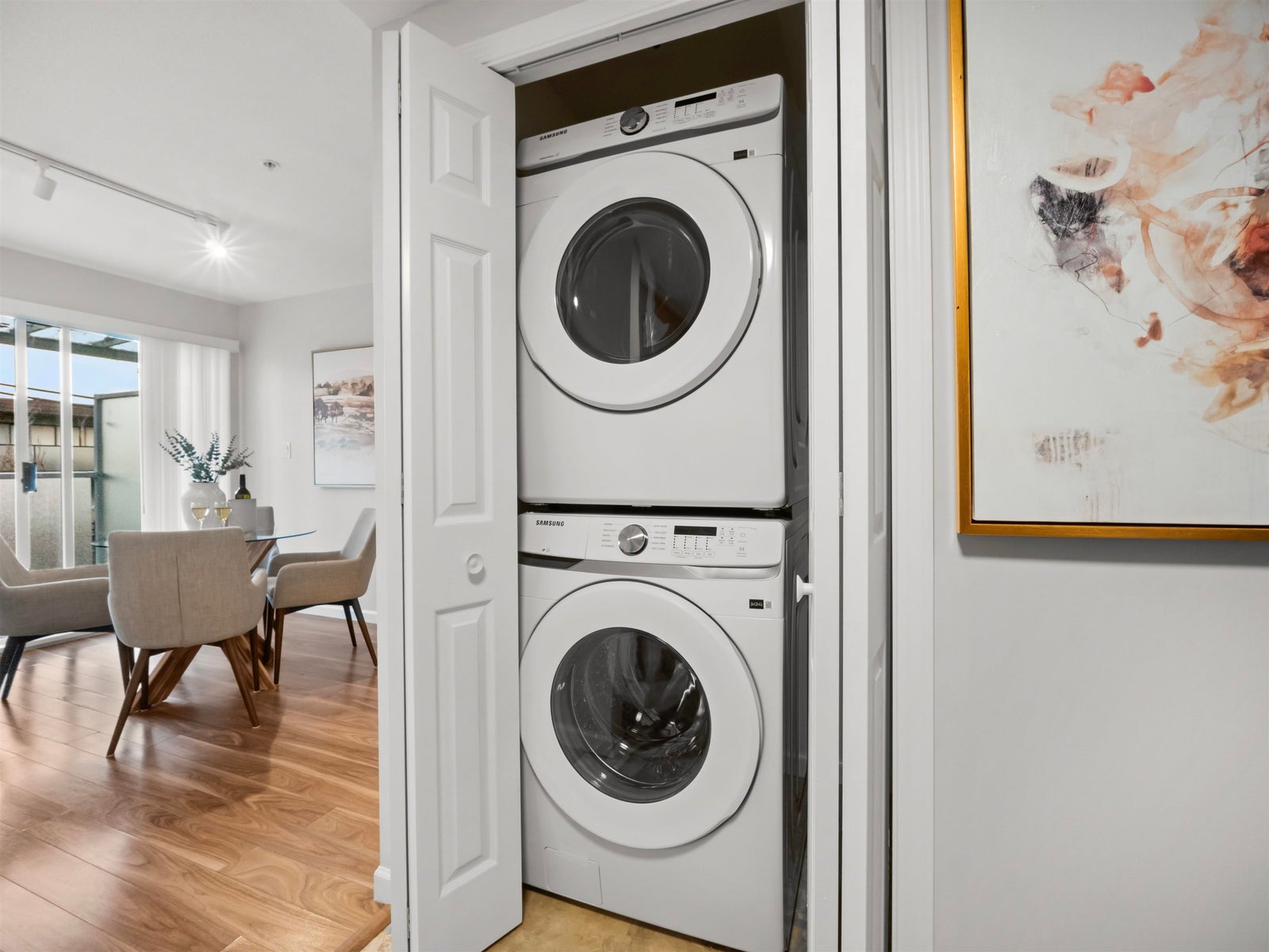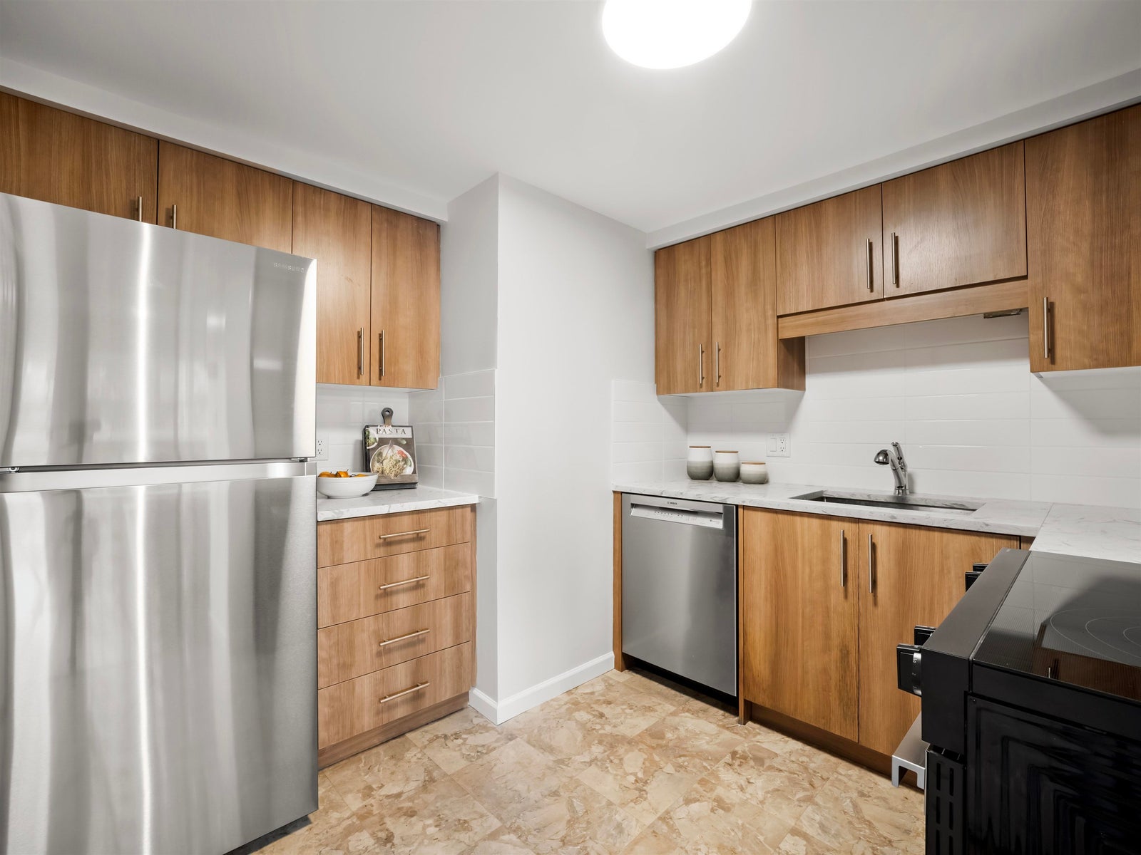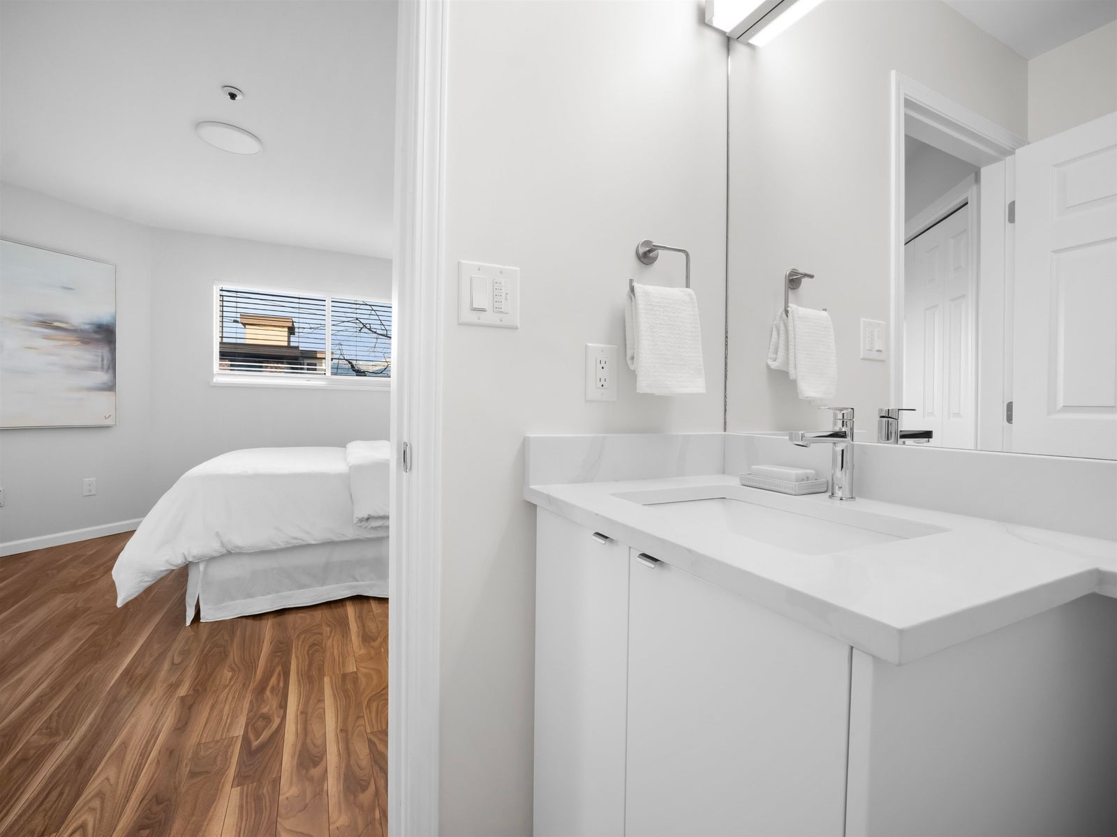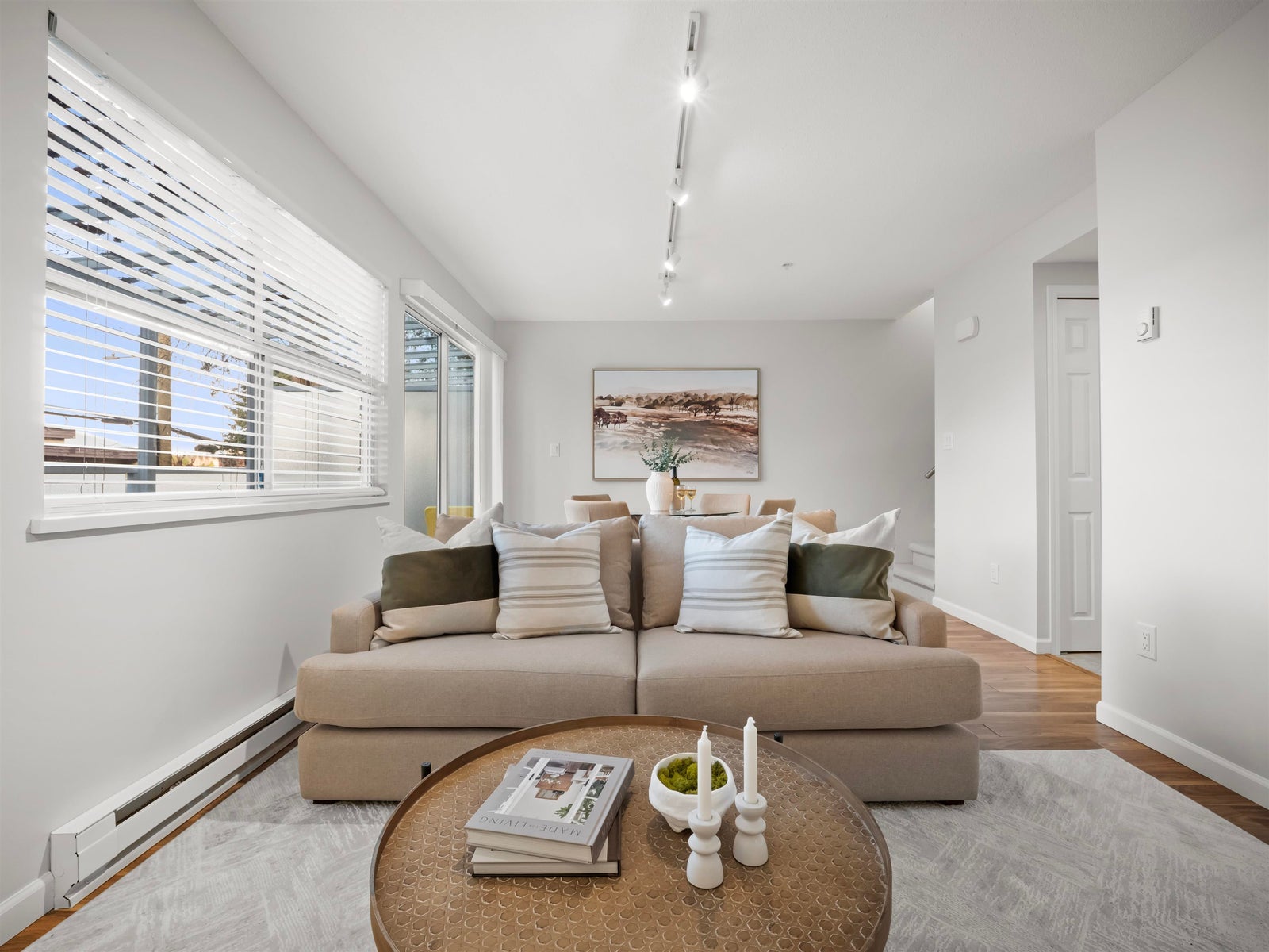 Great value for this completely renovated 2BR/3BA townhome in Mount Pleasant! This warm and bright home features a spacious living/dining area that leads to a large, covered sundeck great for summer living. The renovated kitchen features lots of cabinet space, stone countertops and all new appliances. Laundry closet features brand new washer/dryer and has lots of extra pantry storage, with access to crawl space storage. Two bedrooms up with two updated bathrooms. The large primary bedroom has ensuite and walk-in closet. This home is move-in ready with fresh paint, new flooring. Pets/rentals allowed with 1 parking and low maintenance fees. Join this welcoming 6-unit community close to new Skytrain, VCC, Emily Carr and all restaurants/shops in vibrant Mt Pleasant.