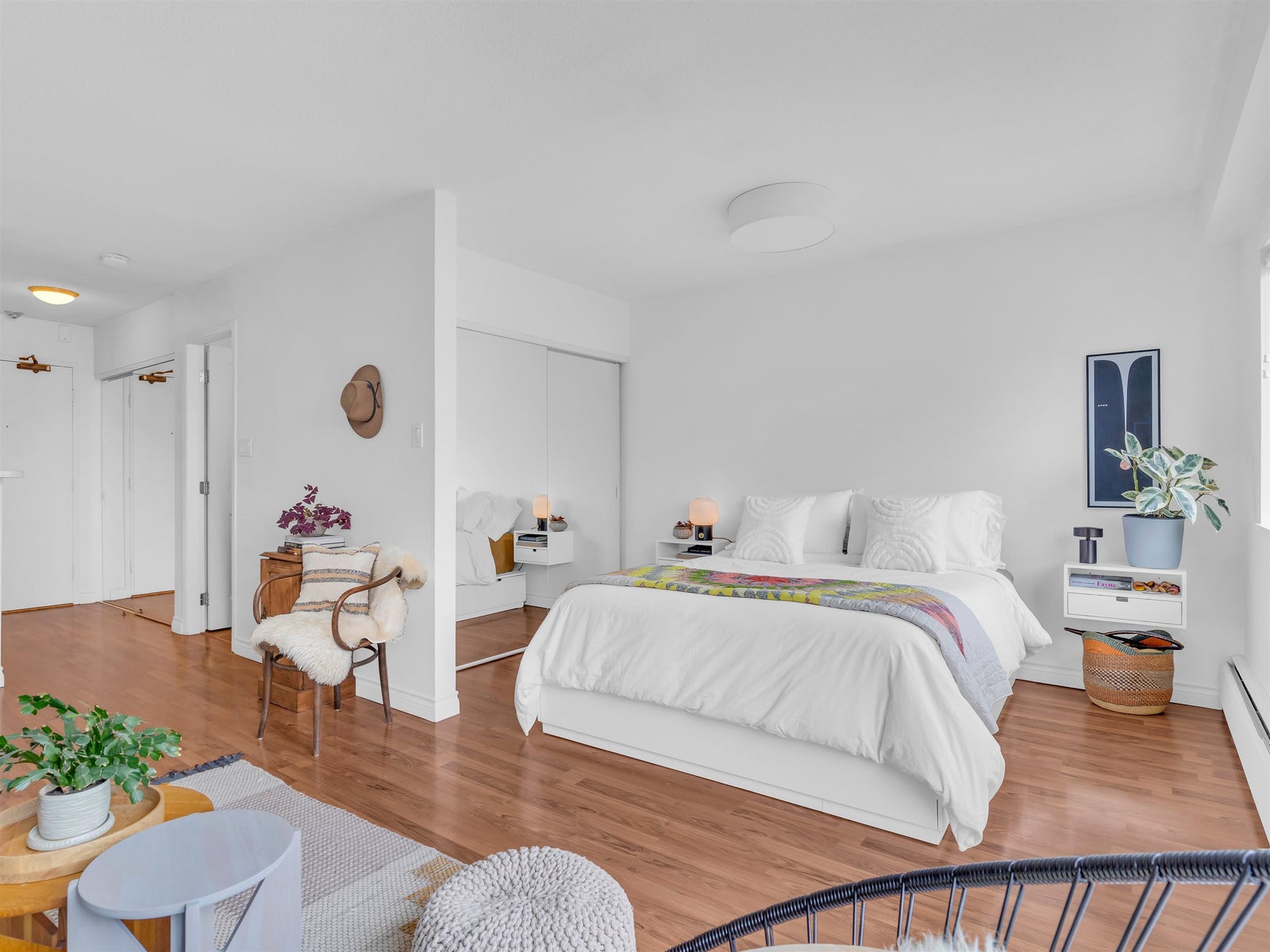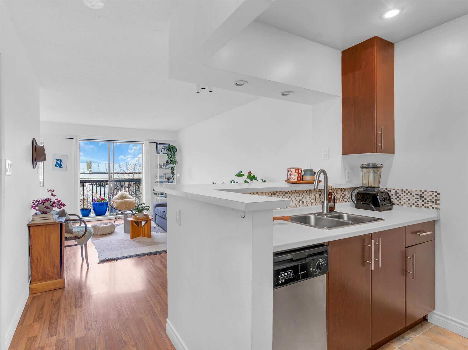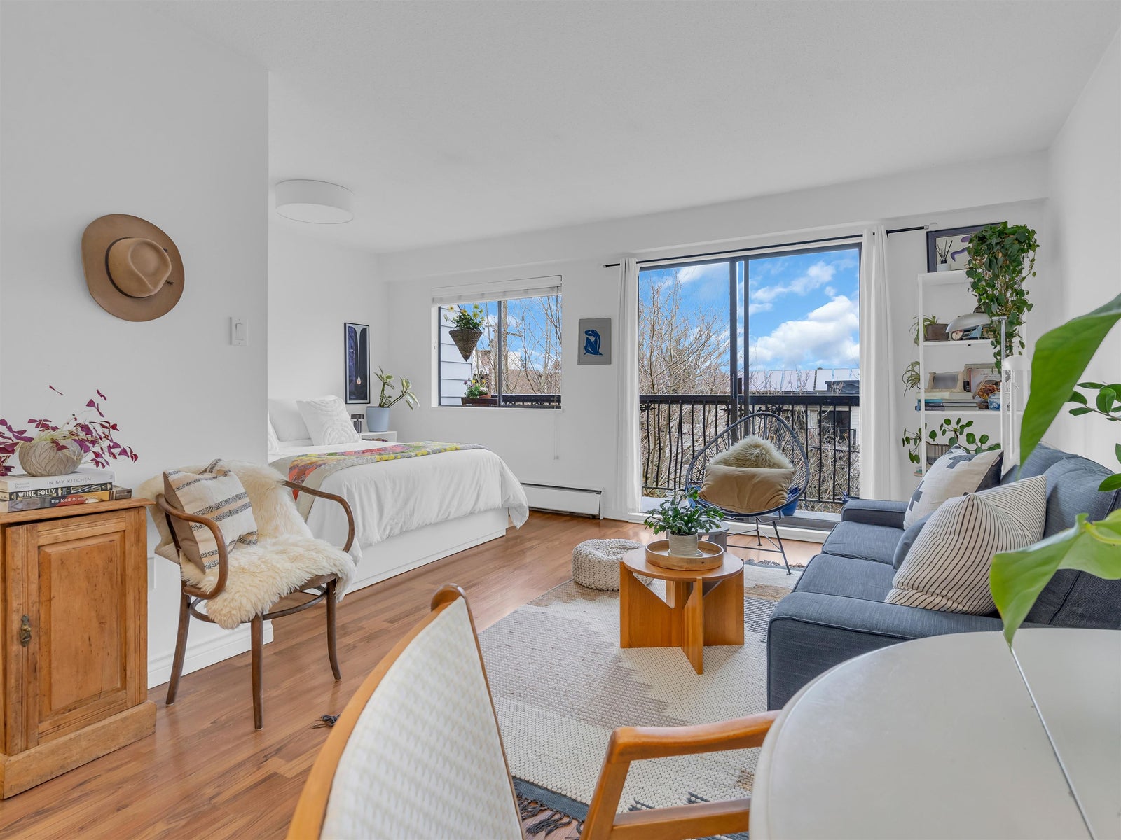 Excellent value for this top-floor studio nestled in central Kitsilano. This bright, renovated home offers a functional layout featuring a sleeping nook and ample storage. Add a sliding partition for seclusion or maintain the open flow to appreciate mountain vistas from your windows. This space fits a dining set or offers casual seating at the kitchen’s breakfast bar. Relax on the expansive balcony overlooking vibrant spring blossoms along this lush, quiet street. The suite remains breezy in summer, includes fiber-optic wiring, one parking stall, a massive locker, and access to secure bike storage. Steps from Kits Beach, Arbutus Greenway, local eateries, the future Skytrain, and West 4th shopping. This prime location is truly unbeatable! Pets welcome!